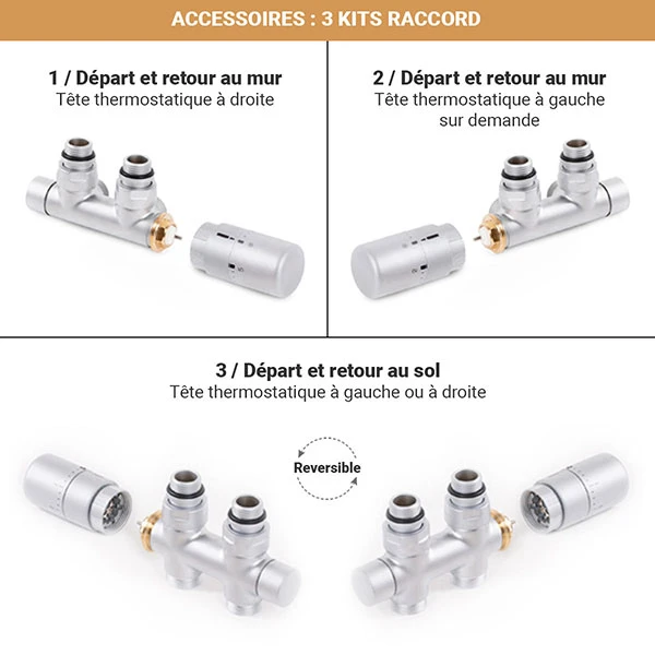 • 3 kits raccord disponibles en accessoires selon votre configuration