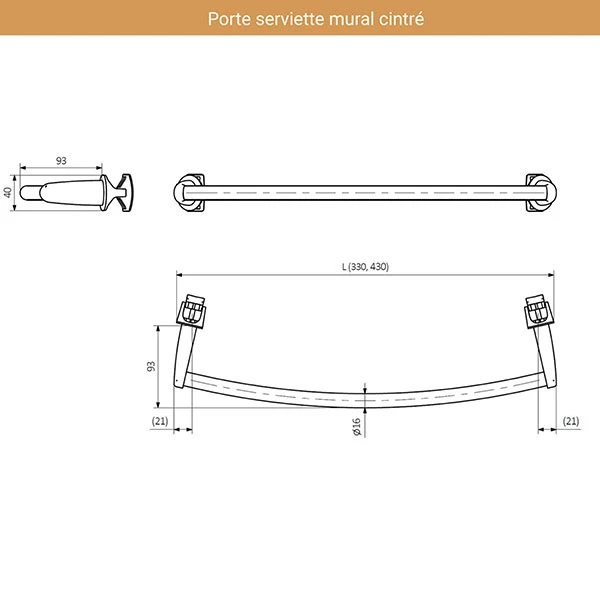 • Barre porte serviette murale cintrée