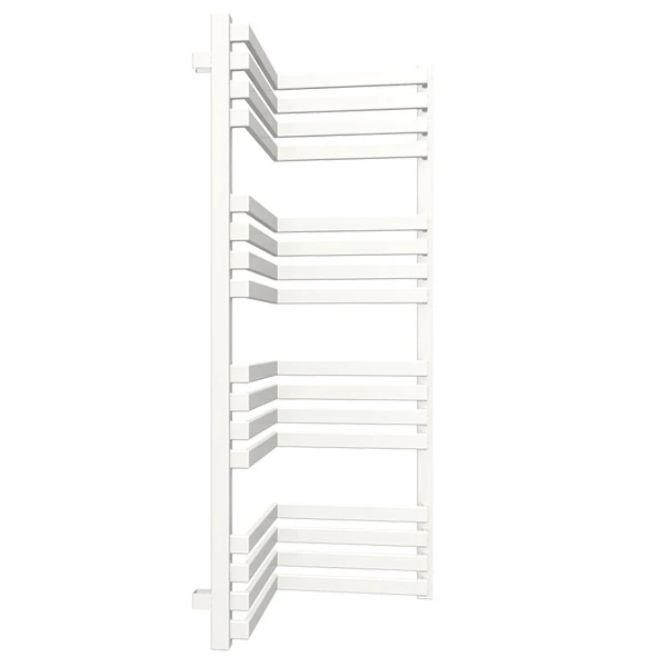 Sèche-serviette blanc qui s’installe dans l’angle de votre salle de bain pour un gain de place