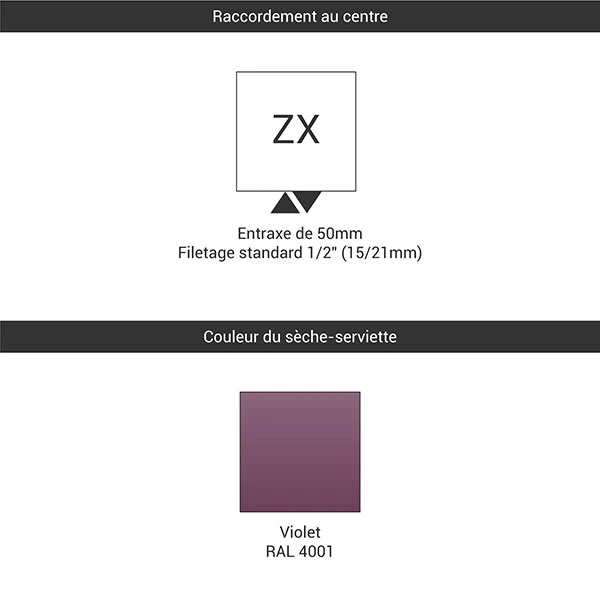 • Toutes les tonalités de gris viendront mettre en valeur le violet de votre sèche-serviette.