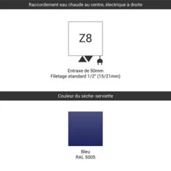 Sèche-serviette Mixte – Bleu Majorelle – Raccordement Au Centre Et à Droite – Zigzag/Z8