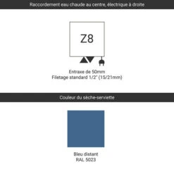Sèche-serviette Mixte – Bleu Distant – Raccordement Au Centre Et à Droite – Alex