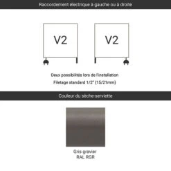 Sèche-serviette Mixte – Gris Foncé Métallique – Raccordement Aux Extrémités – Kioto/V2