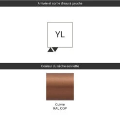 Sèche-serviette Design – Chauffage Central – Bright Copper – Raccordement à Gauche – HEX/YLBCO