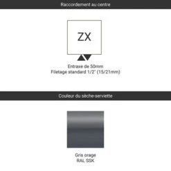 Sèche-serviette Design Eau Chaude – Gris Orage – Raccordement Au Centre – HEX/ZX
