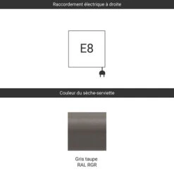 Sèche-serviette électrique – Gris Taupe – Raccordement à Droite – Fiona/E8