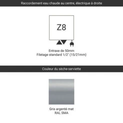 Sèche-serviette Mixte – Gris Argenté Mat – Raccordement Au Centre Et à Droite