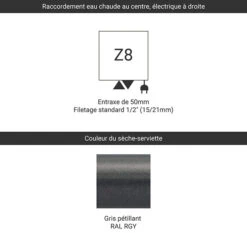 Sèche-serviette électrique – Poivre Et Sel – Raccordement à Droite – Zigzag/E8