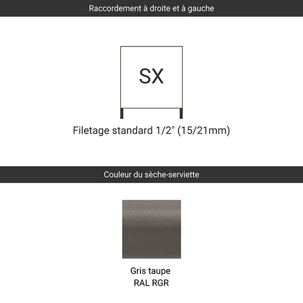• Raccordement aux extrémités : entraxe de 30mm de moins que la largeur du radiateur
