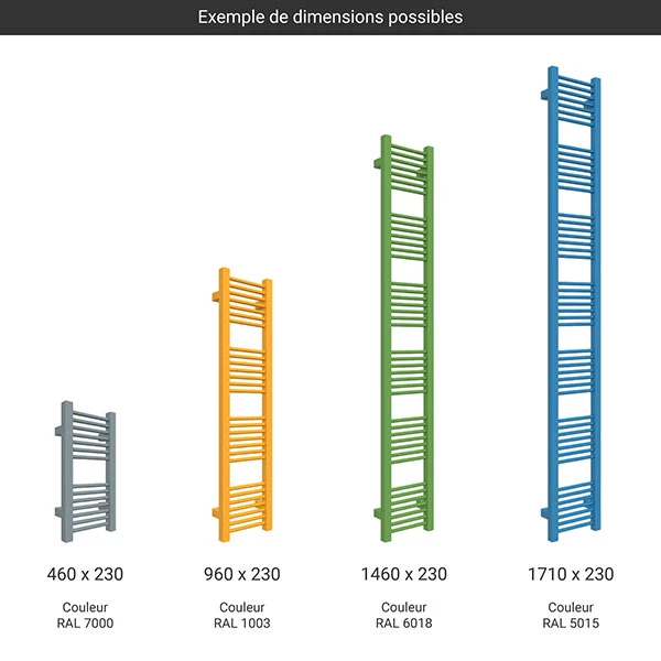 • Simplicité alliée à l’élégance pour ce sèche-serviette proposant une large gamme de dimensions. Adaptez votre sèche-serviette à la taille de votre salle de bain.