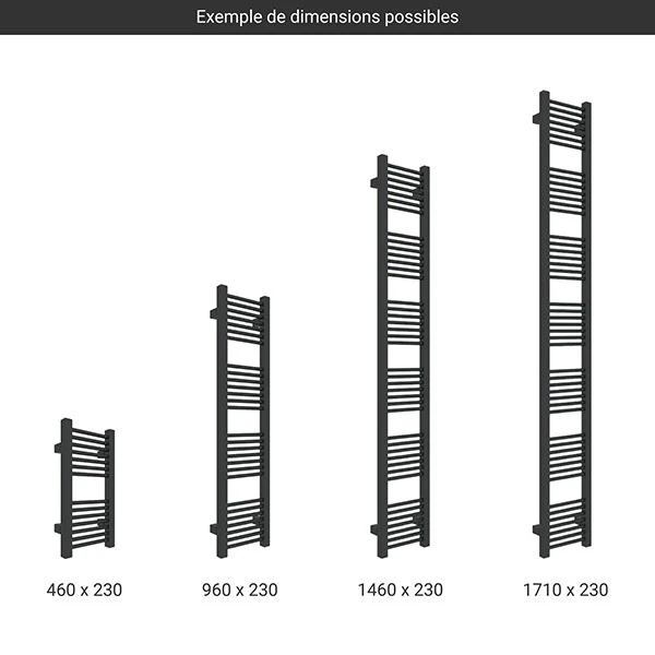 • Simplicité alliée à l’élégance pour ce sèche-serviette proposant une large gamme de dimensions. Adaptez votre sèche-serviette à la taille de votre salle de bain.