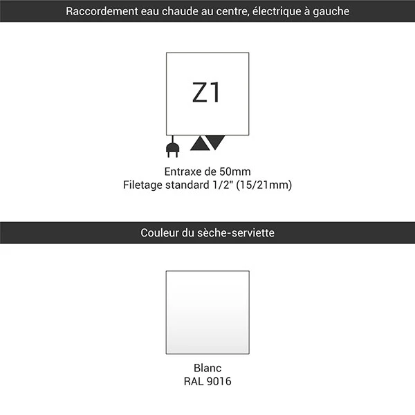 • Barre porte serviette : à accrocher directement sur le sèche serviette. Utile et pratique pour disposer et suspendre vos serviettes les unes à côté des autres et optimiser leurs séchages.