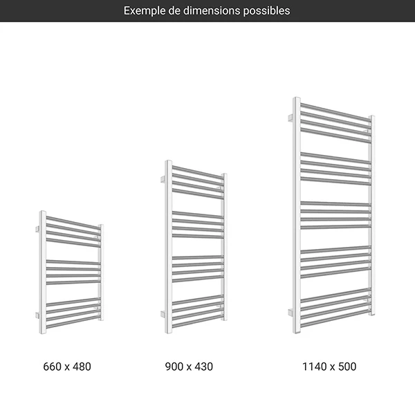 • Un sèche-serviette d’apparence classique avec une touche de raffinement grâce à la délicatesse des barreaux circulaires et l’espacement de ses sections de tubes.