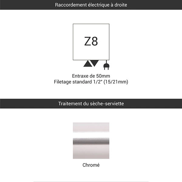 • Tempérez votre pièce en mi-saison grâce au mode électrique pour chauffer votre serviette toute l’année