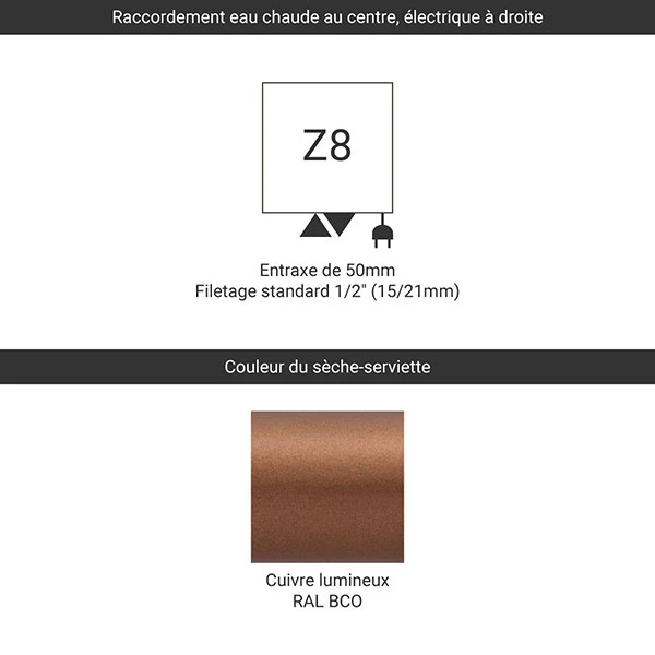 • Raccordement mixte Z8 : électrique à droite et de l’eau au centre