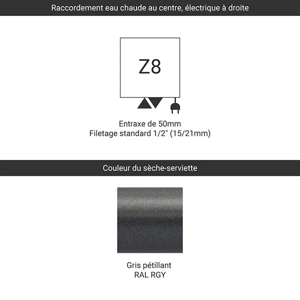 • Raccordement mixte Z8 : électrique à droite et de l’eau au centre