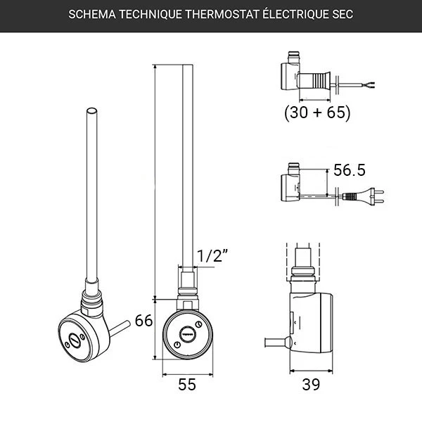 • Dimension du thermostat : 66mm de haut et 55mm de large