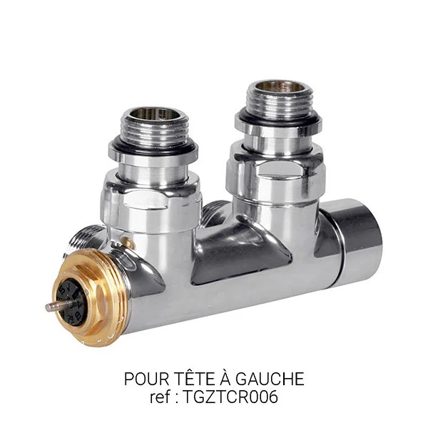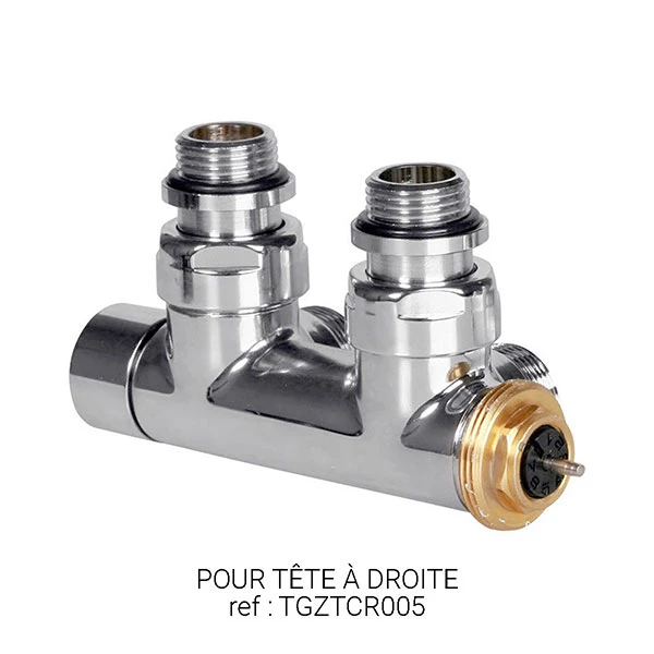 Cette vanne thermostatique correspond au raccordement ZX pour un sèche-serviette chauffage central, et à un raccordement Z1 ou Z8 pour un sèche-serviette mixte. Pour cette vanne 24-19, il est obligatoire de prévoir un raccord du même diamètre.